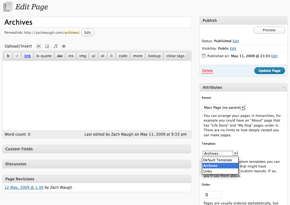 Creating an archives page with WordPress